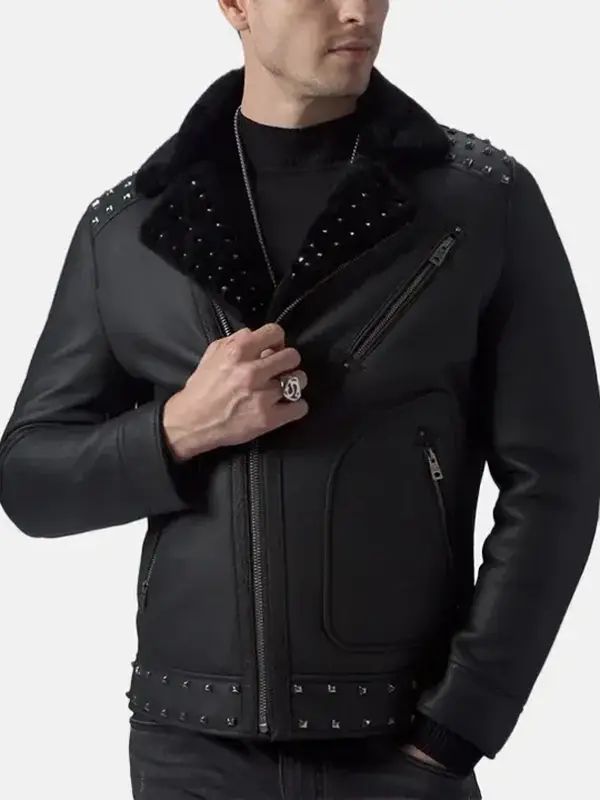 Men’s Studded Black Leather Jacket