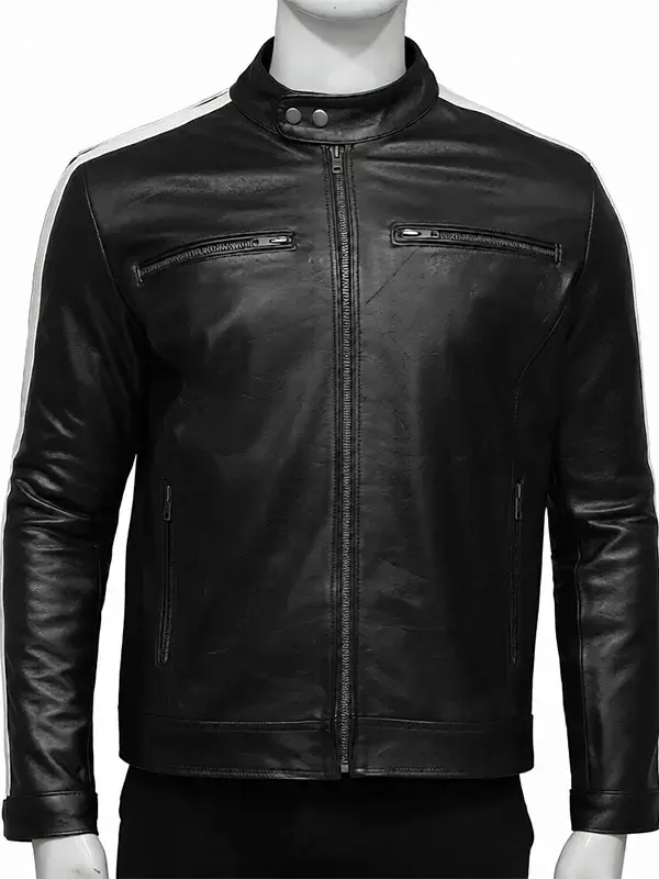 Men’s White Striped Black Leather Jacket