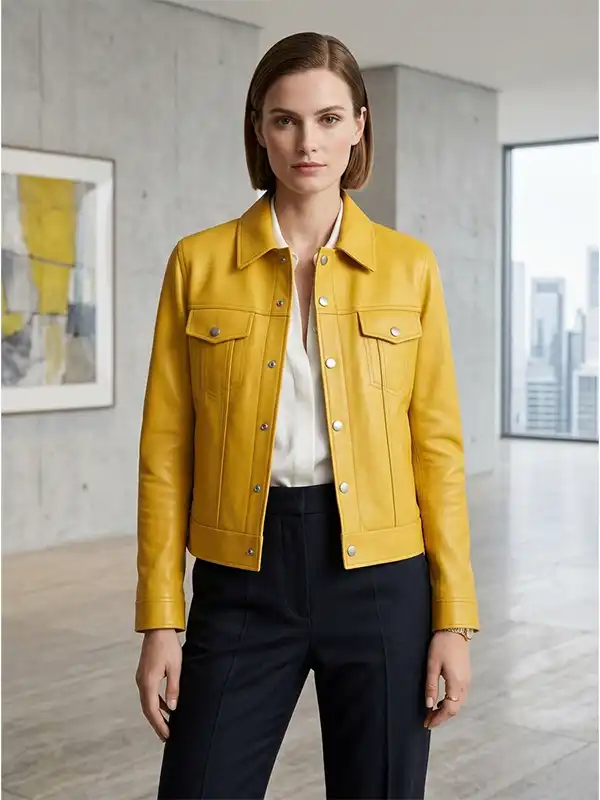 When choosing what to wear with a yellow leather jacket, go for simple combinations. Black jeans, white tees, and boots are the easiest match. You can also wear it with slim-fit trousers and sneakers for a modern street style. The key is to let the yellow leather jacket stay the center of attention.