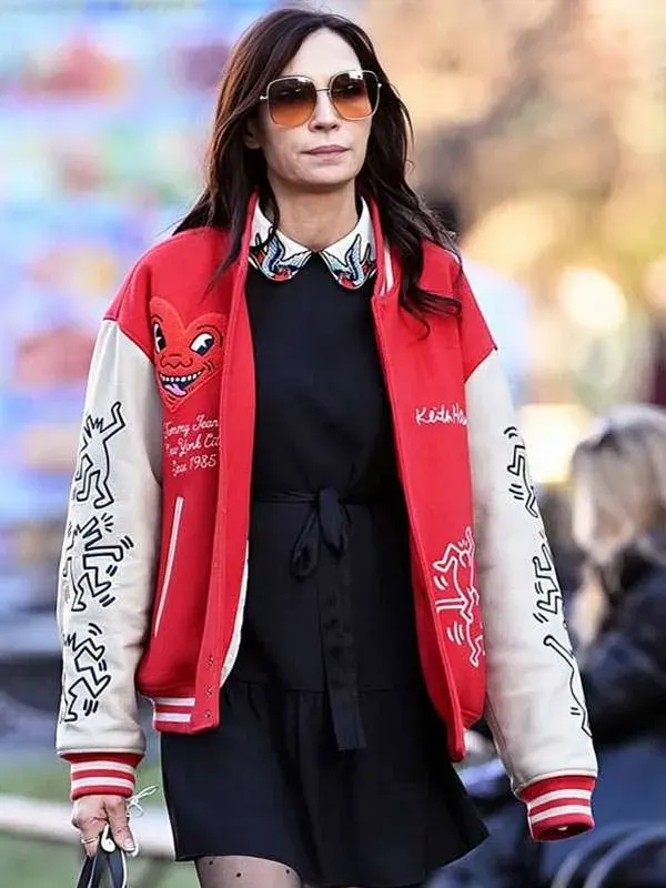 Keith Haring Heart Face New York City 2026 Famke Janssen Red Varsity Jacket