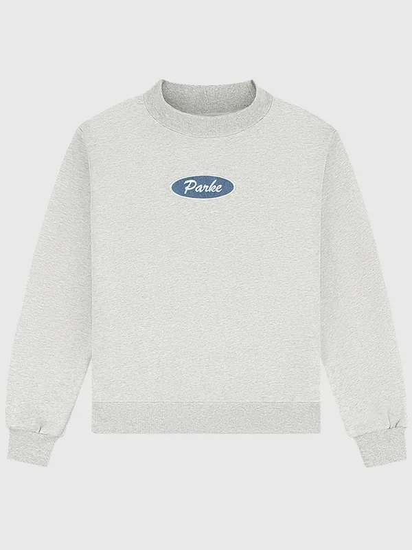 The Parke Signature Inspired Grey Fleece Sweatshirt | Parke Signature Patch Mockneck Sweatshirt