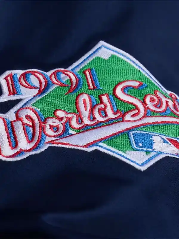 The Kirby Puckett Minnesota Twins Satin Jacket brings classic baseball style into an easy everyday layer. Made in navy blue satin, this Supreme Satin Applique Hooded Sweatshirt (FW25) has a clean shine that stands out without looking too heavy. The full-snap front, rib-knitted collar, cuffs, and hem give it that old-school team jacket shape people still love today.