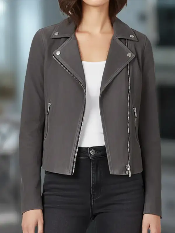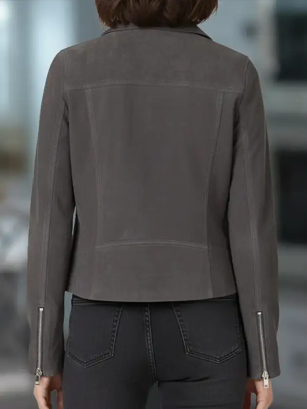 Neve Campbell Grey Jacket From Scream 7 | Scream 7 Neve Campbell Grey Suede Jacket