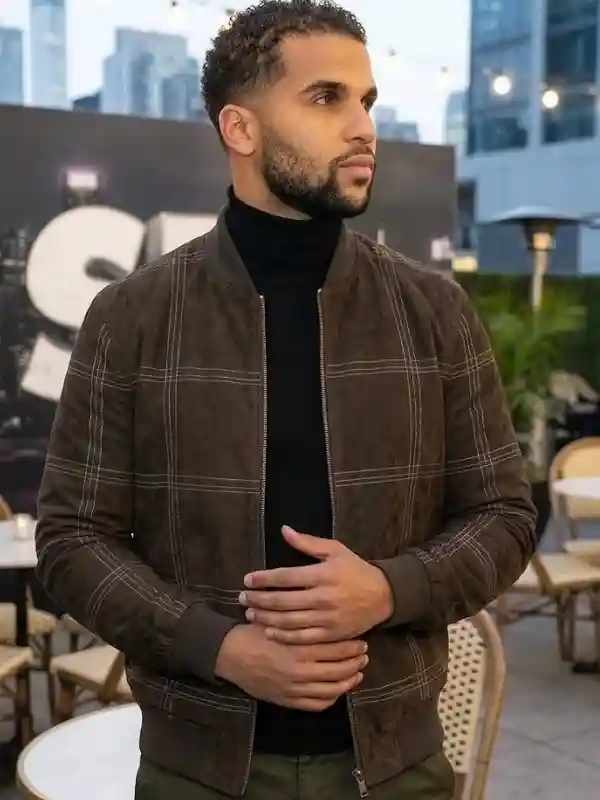 Mason Gooding Brown Checkered Bomber Jacket From Scream VI | Scream VI Mason Gooding Bomber Jacket