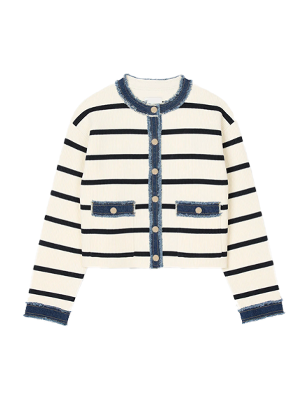 Blend Casual and Chic with the Striped Cardigan Featuring Denim Details