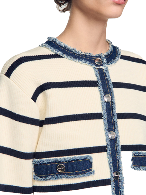 Striped cardigan with denim details