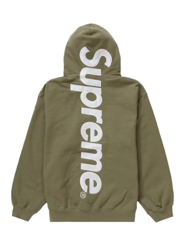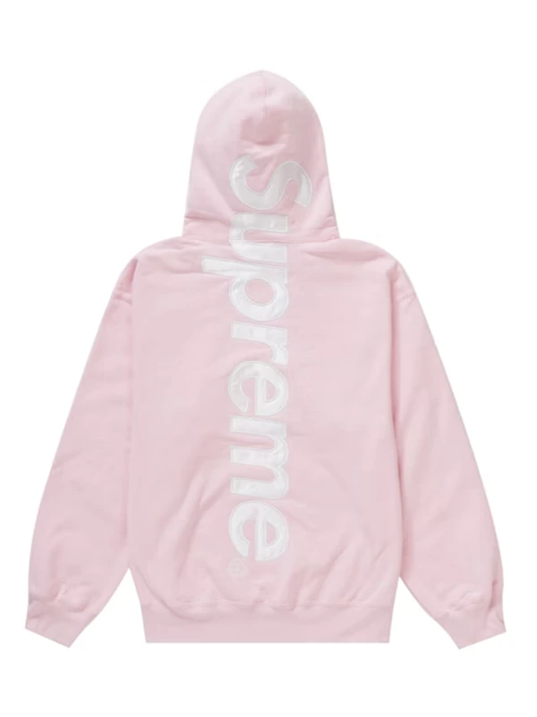 The Supreme Satin Applique Hooded Sweatshirt is a definitive masterpiece of modern street culture. This garment acts as a powerful Persona Armor for those who want to project a bold, high-velocity identity. Crafted from premium brushed-back fleece, the hoodie offers a heavyweight feel that ensures Textural Narrative Integrity while providing lasting warmth. The standout feature is the large satin logo appliqué across the back, which adds a luxurious sheen and visual depth, making it a vital tool for identity transformation in any urban setting.