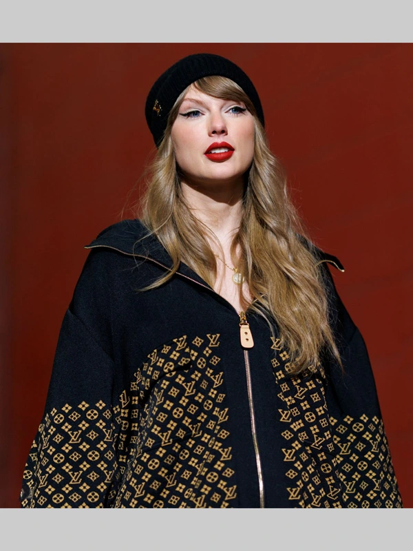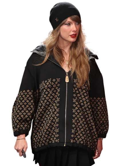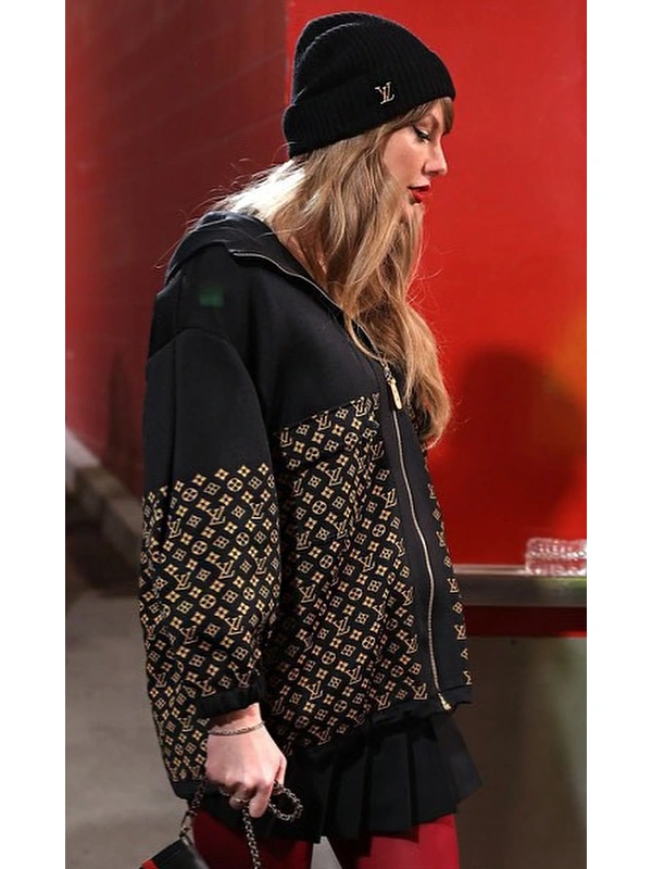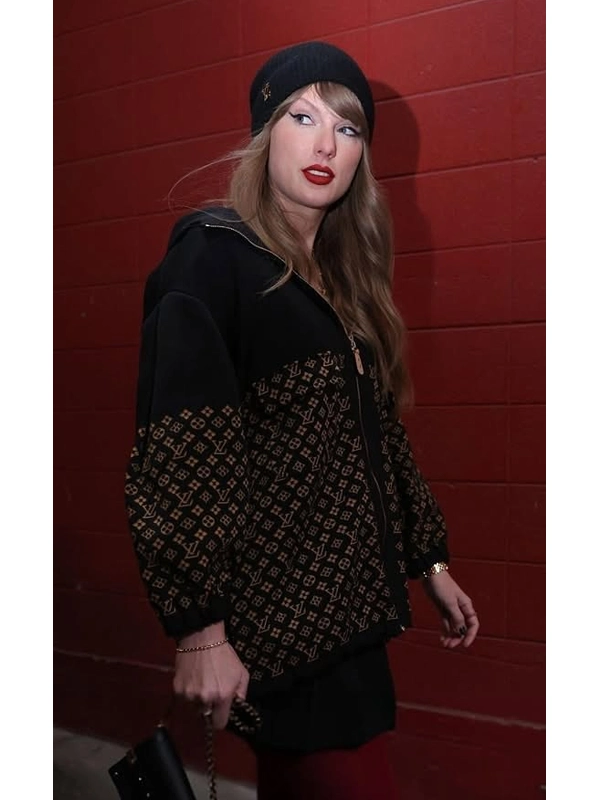 AFC Championship Game Chiefs vs Bills Taylor Swift Louis Vuitton Monogram Jacquard Knit Jacket Hoodie Black