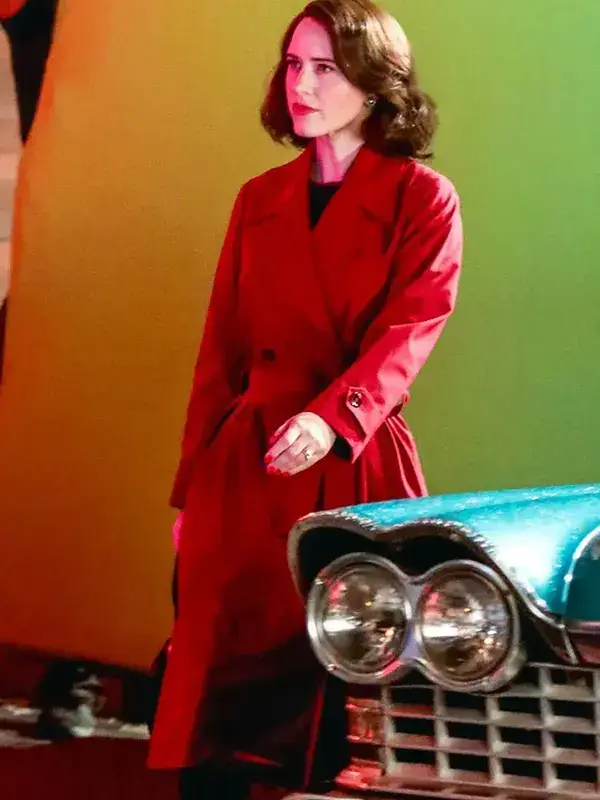 This Marvelous Mrs. Maisel Miriam Red Belted Coat brings a splash of color and a bit of retro fun to your closet. Inspired by Rachel Brosnahan’s look in the show, this Maisel Miriam S04 Wrap Coat grabs attention anywhere you go. The bright red wool fabric isn’t just striking—it’s also warm and soft, perfect for cooler days or nights out. Slip it on and it feels cozy right away, thanks to a soft inner lining that’s made for comfort.