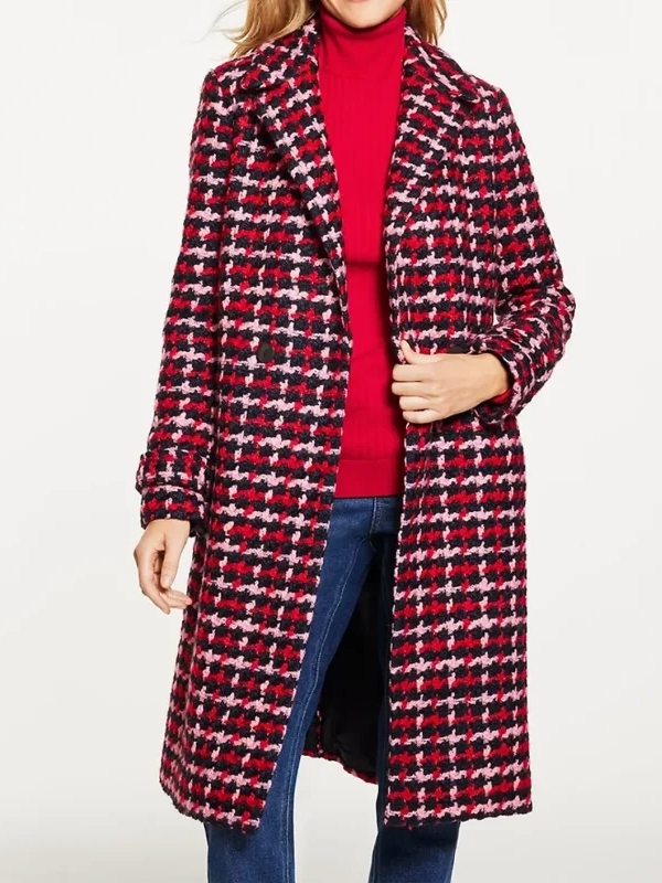 The Today Show 2026 Dylan Dreyer Single-Breasted Navy, Red and Pink Hounds tooth Check Tweed Coat