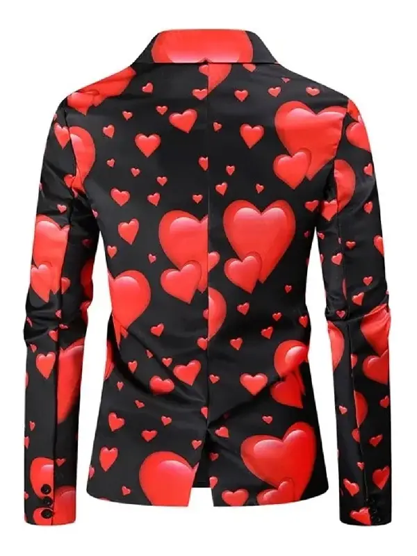 Hearts Printed Valentines Day Black Coat For Men And Women