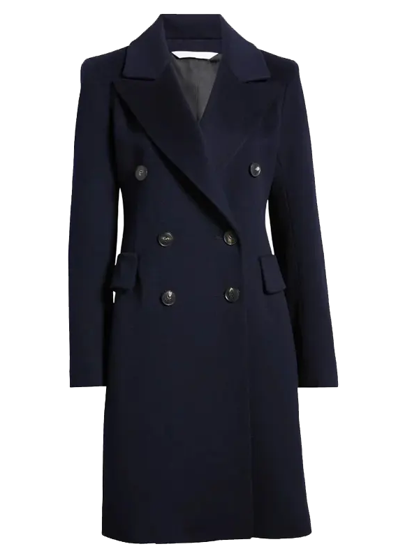 Women’s Classic Navy Blue Double Breasted Wool Trench Coat