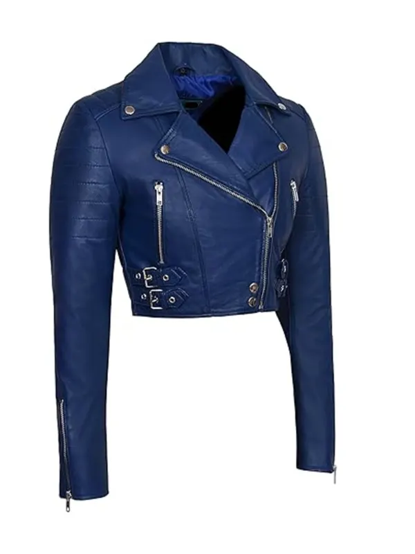 Womens Blue Cropped Leather Jacket