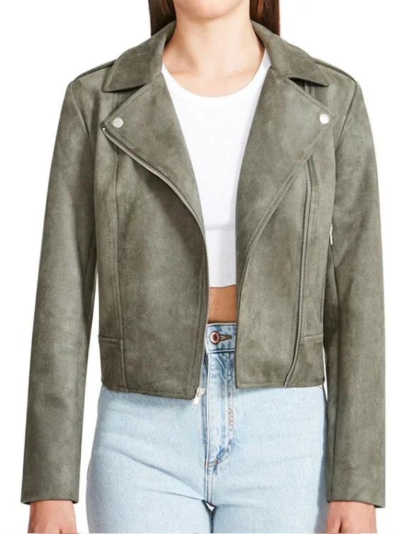 Womens Grey Vegan Suede Moto Jacket