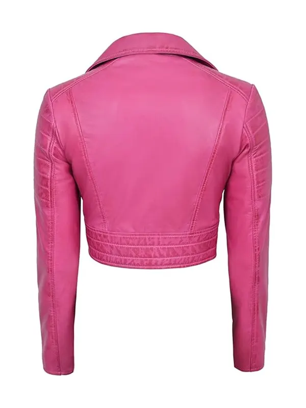 Pink Cropped Leather Jacket For Women