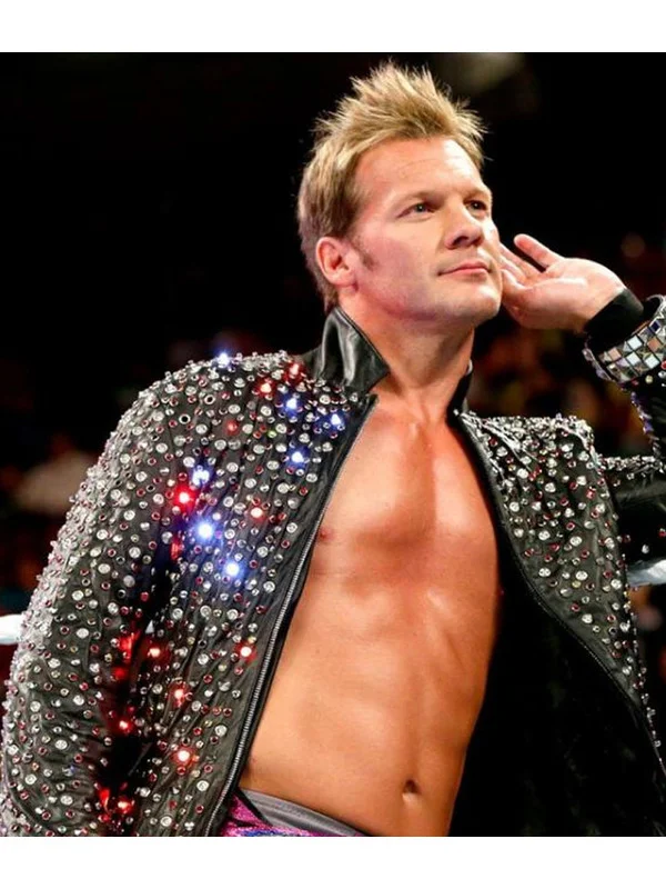 Be in the spotlight just like a wrestling legend. This fantastic WWE Chris Jericho Sparkle Light Up Leather Jacket adds the strength and spark of the ring to your life. If you are a huge fan of the superstar Chrish Jericho. Then this outfit is for you.