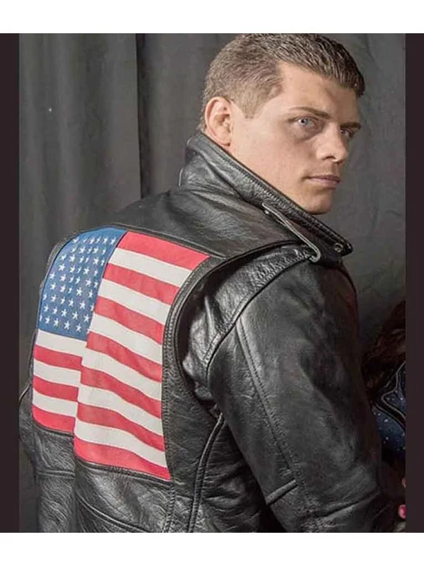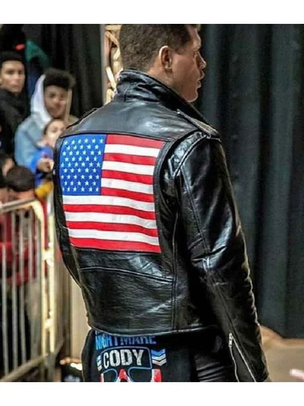 WWE Cody Rhodes US Flag Motorcycle Black Leather Jacket