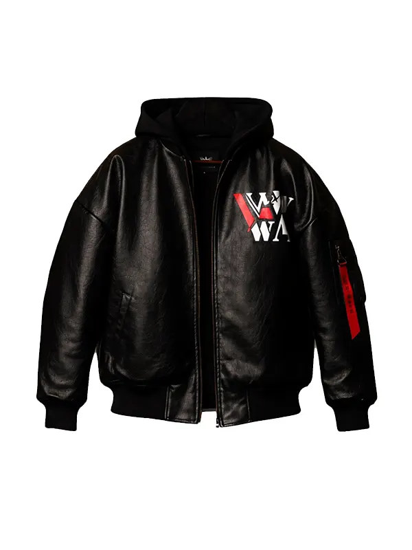 This hooded leather bomber is engineered with practical details that enhance its sporty edge. The front zipper closure provides a clean finish and makes it easy to wear, while the hooded collar adds an extra layer of warmth and a unique style element. With full-length sleeves and rib-knitted cuffs, the jacket offers a snug and secure fit that adapts to your movement. It features two outside pockets and two inside pockets, allowing you to safely carry your essentials while maintaining a streamlined look. To see more gear inspired by the ring, explore our WWE Outfits & Apparel or check out our Women’s Leather Biker Jackets for more fearless styles.