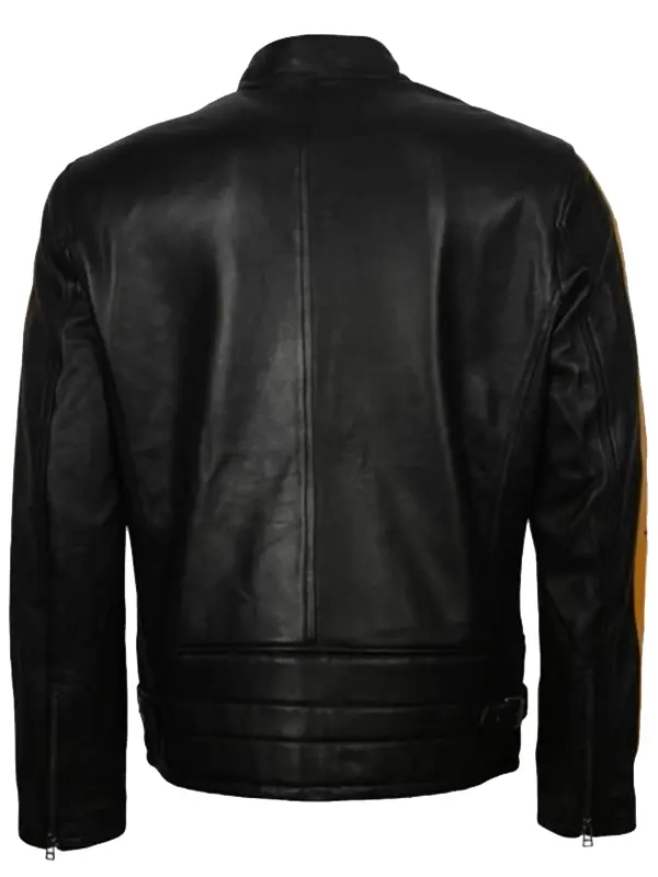 Yellow Star Black Biker Leather Jacket Bold Rider Style