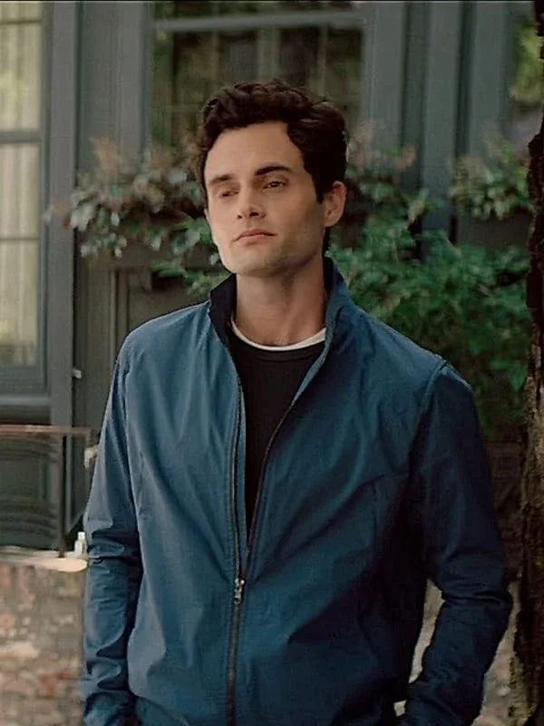 Cotton is used to make the You Penn Badgley Jacket. The jacket is offered in a stunning blue color that gives it a modern and trendy appearance. The Joe Goldberg Jacket has a stand-up collar with a zipper fastening, which is handy for the wearer and gives the jacket a trendy appearance. Which provides comfort to the wearer. It has long, fitted sleeves with exposed hem cuffs. The jacket boasts two side waist pockets for storage, making this magnificent jacket even more enticing. It is made to last thanks to the high quality stitching.